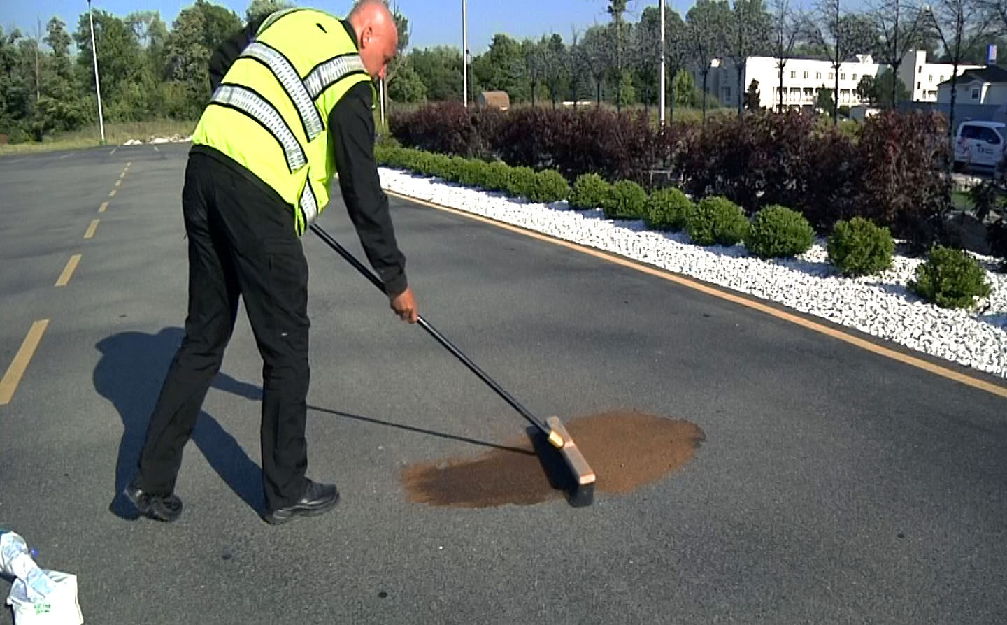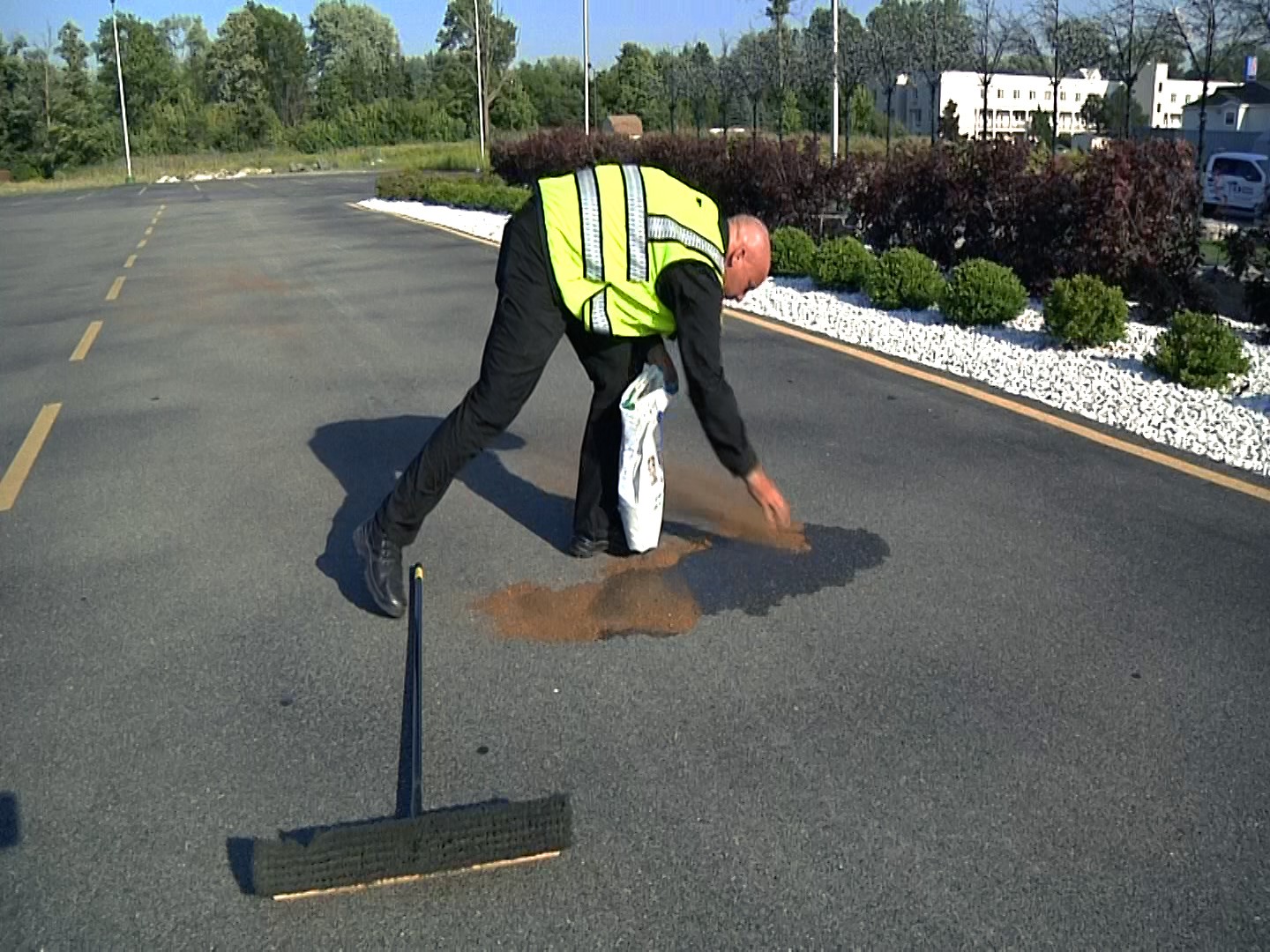 Regardless of substance used to absorb the fluids, be sure to dispose of it properly. Gasoline and engine oil are harmful for the environment and should never be left on the road, in a parking lot or swept the side of the roadway.