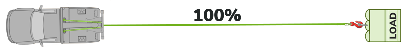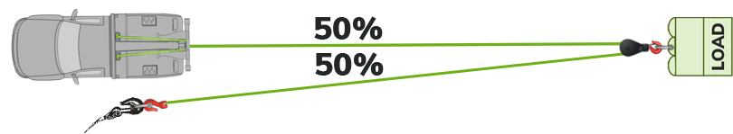 If the winch line is fed through a snatch block and a second line is created, the load will be divided between the two lines: