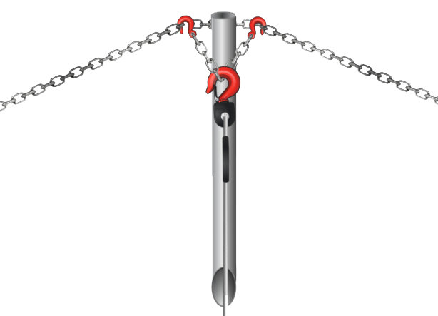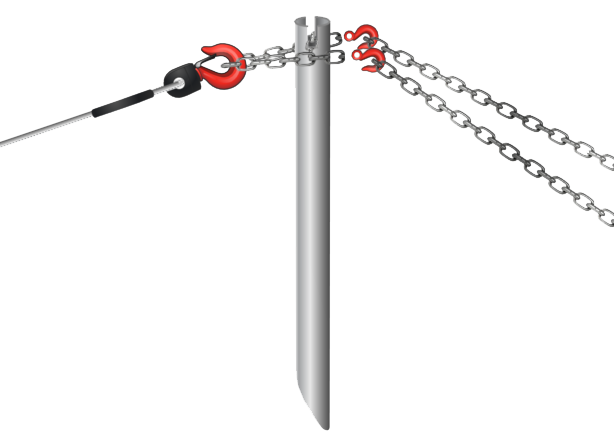 A short piece of chain (1/4” grade 8 alloy); approximately 15” to 18” in length, along with grab hooks at each end (WreckMaster calls this piece of rigging a Sister Chain). This piece of rigging is needed for use in this up-righting procedure. You will be sure to find the roll-over stiff leg a great asset for you and your personnel in the up-righting of passenger cars as well as many uses for recoveries.