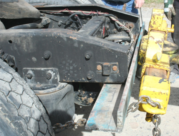 Using a piece of aluminum or angle iron would be useful, as the chains come up wider than the actual frame rails.