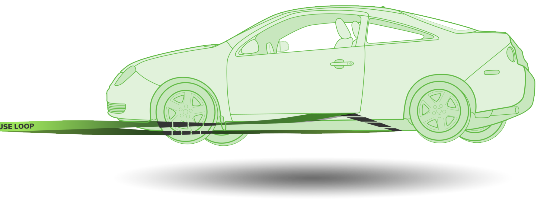 The strap is threaded through the passenger compartment of the car, which avoids any undercarriage components such as frame slots, (wish are designed for transport and not recovery) control arms, tie rods, and trailing arms.