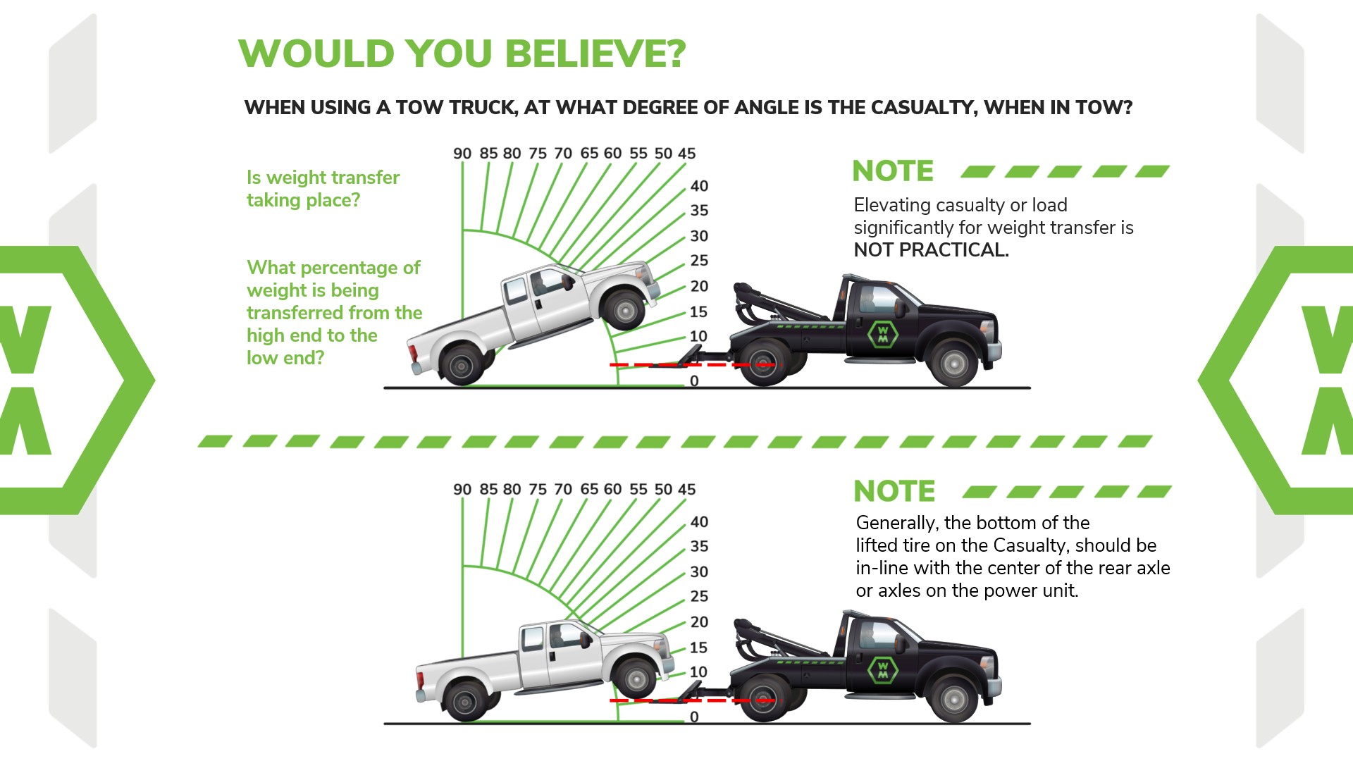 The higher you lift a vehicle in tow, the heavier vehicle your tow truck can handle.